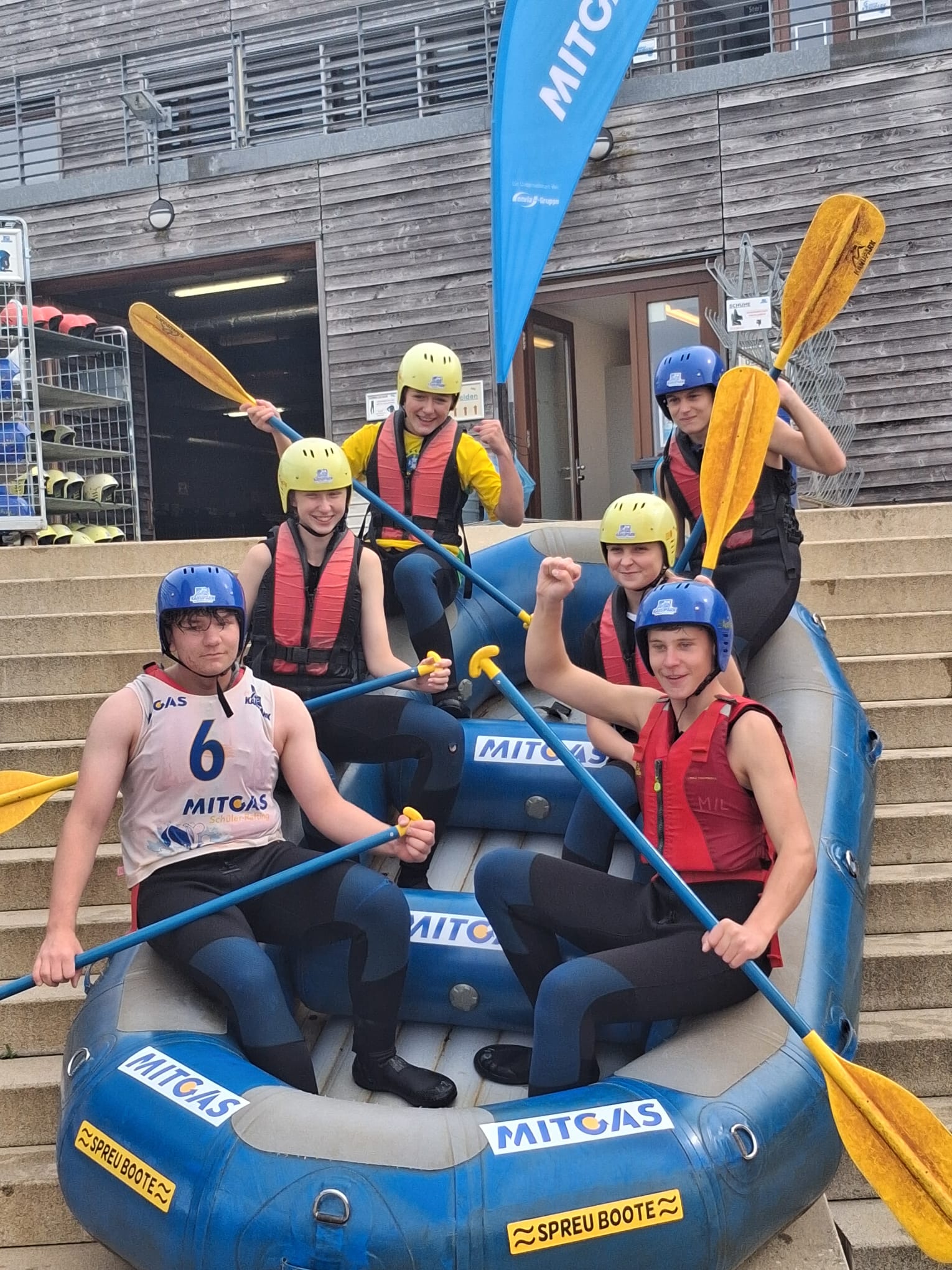 Die Oberschule Markranstädt trat mit einem gemischten Team aus drei Mädchen und drei Jungen an. Unter der motivierenden Ansprache von Guide Anton schwor sich die Mannschaft auf das Abenteuer ein. Nach den Zeitrunden ging es im Modus „Boot gegen Boot“ direkt ins Duell – ein packendes Rennen, in dem nur Teamgeist, Power und Präzision zählten.